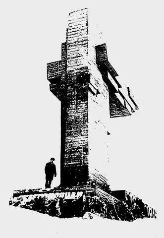 How was the plastic idea of the monument born? - this is a flight over the endless, deserted and snow-covered hills, so there was a tall, inclined, as if under the pressure of the wind, vertical stela with a long wing, which was clearly read against the background of the northern sky. This is a kind of abstracted Athena Apteros, energizing and giving a feeling of flight. In those days, abstract monuments were not erected, but the customers, the pilots, accepted the idea immediately and as one of them said: "There is no plane, but it flies."