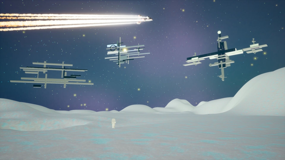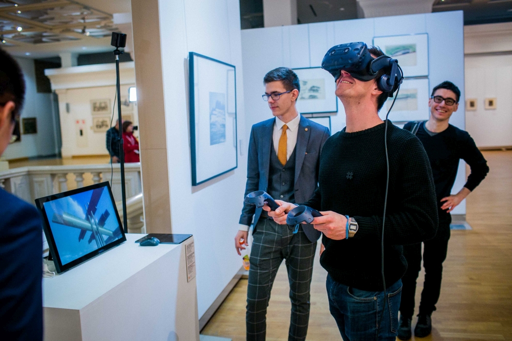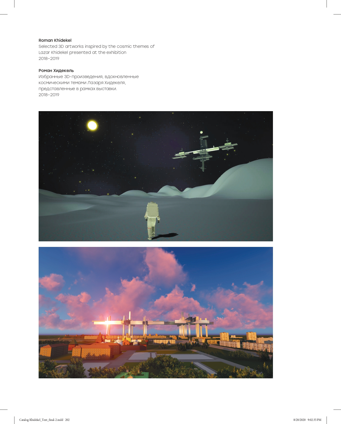 Roman Khidekel's 3D artworks inspired by the cosmic themes of Lazar Khidekel presented at the exhibition.