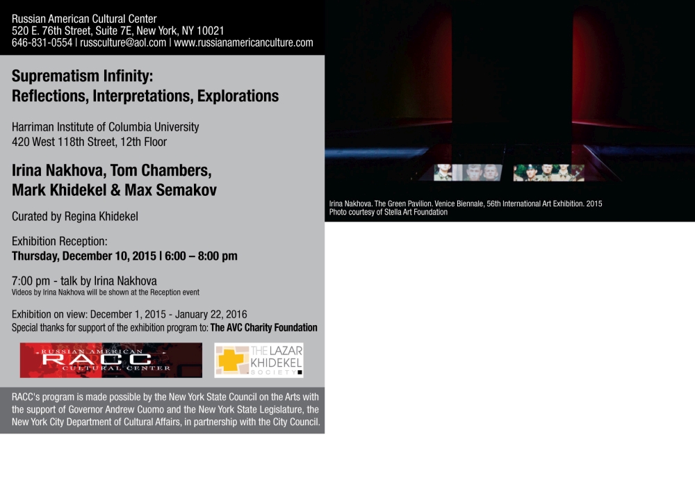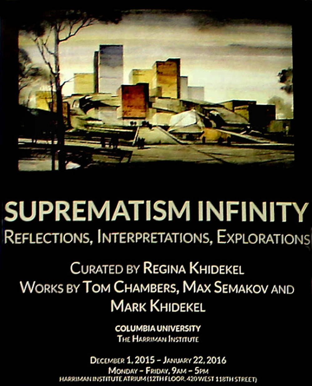 Suprematism Infinity: Reflections, Interpretations, Explorations. Irina Nakhova, Tom Chambers, Max Semakov and Mark Khidekel. Harriman Atrium / Columbia University 2015